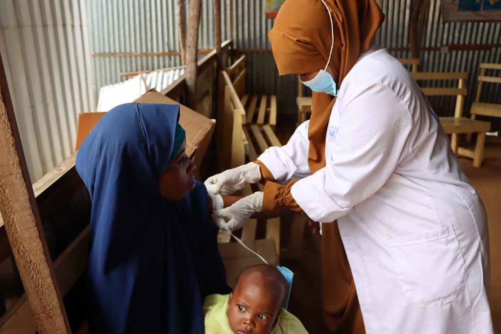 – De flesta mödrar i lägret är magra och deras immunförsvar är mycket svagt, säger Naima, den näringssjuksköterska som behandlar Amino. De är mycket desperata när det gäller näringstjänster och hälsovård. Man kan se hur mycket torkan har påverkat barnen på graden av allvarlig undernäring på deras små kroppar. På centret erbjuder vi näringstillskott till barnen, tabletter med mikronäringsämnen och gröt till gravida och ammande kvinnor, säger hon.