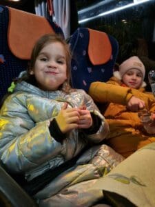 Systrarna i bussen som tog dem över gränsen till Polen.