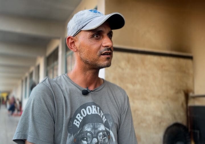 Fares bor med sin fru och barn i ett skyddsrum i en skola i Khan Yunis på Gazaremsan. Hans dotter är bara sex månader gammal. Där bor de utan sanitet, mediciner eller vatten. Och i Gaza börjar sjukdomarna sprida sig.