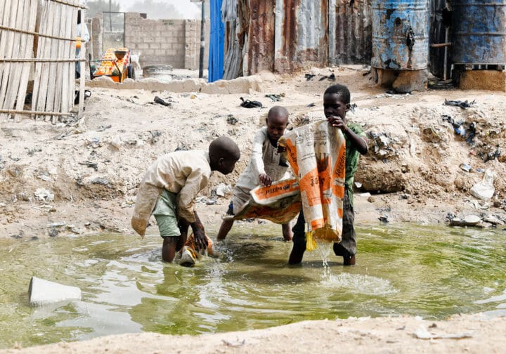 Barn tvingas lämna sina hem efter översvämningen i Nigeria